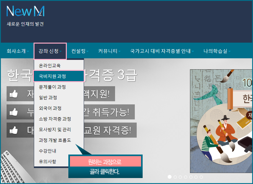 ȨÆäÀÌÁö Á¢¼Ó > ·Î±×ÀÎ > [°Á ½Åû] > [±¹ºñÁö¿ø °úÁ¤] ¸Þ´º¸¦ Ŭ¸¯ÇÕ´Ï´Ù.